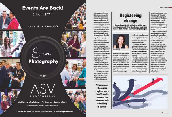This autumn the registration pattern was artificially shaped by Covid rule changes , most shows had a lack of registrations until 2-4 weeks out . The last week in September was when our visitors sprang back to life . It ’ s a moot point to see what the legacy of 2021 is in terms of registration patterns , but I hope that 2022 sees some new marketing ideas to engage with visitors , which helps organisers win those marginal gains .