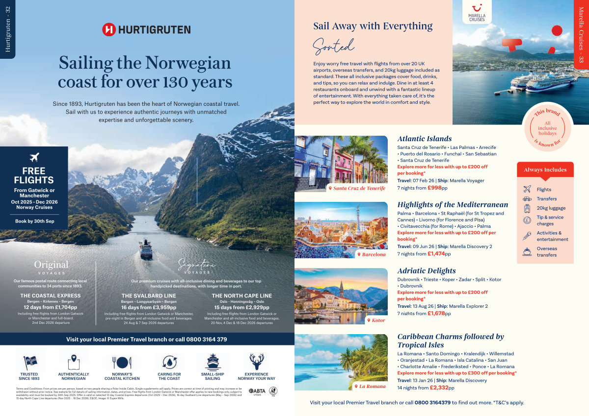 Visit your local Premier Travel branch or call 0800 3164379 to find out more. * T & C’ s apply.