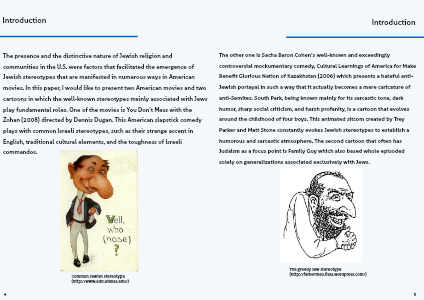 The presence and the distinctive nature of Jewish religion and communities in the U.S. were factors that facilitated the emergence of Jewish stereotypes that are manifested in numerous ways in American movies. In this paper, I would like to present two American movies and two cartoons in which the well-known stereotypes mainly associated with Jews play fundamental roles. One of the movies is You Don’t Mess with the Zohan (2008) directed by Dennis Dugan. This American slapstick comedy plays with common Israeli stereotypes, such as their strange accent in English, traditional cultural elements, and the toughness of Israeli commandos.