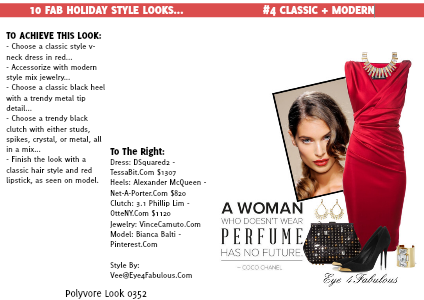 - Finish the look with a classic hair style and red lipstick, as seen on model.