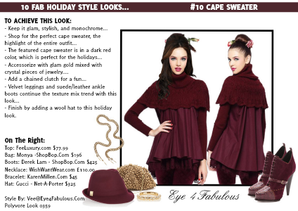 - The featured cape sweater is in a dark red color, which is perfect for the holidays...