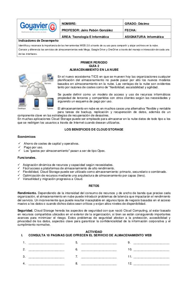 PRIMER PERIODO GUÍA 2 ALMACENAMIENTO EN LA NUBE