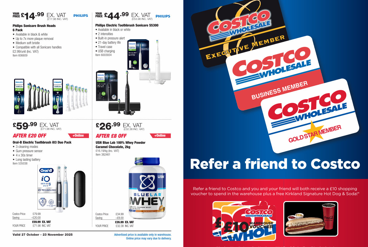Refer a friend to Costco and you and your friend will both receive a £ 10 shopping voucher to spend in the warehouse plus a free Kirkland Signature Hot Dog & Soda!*