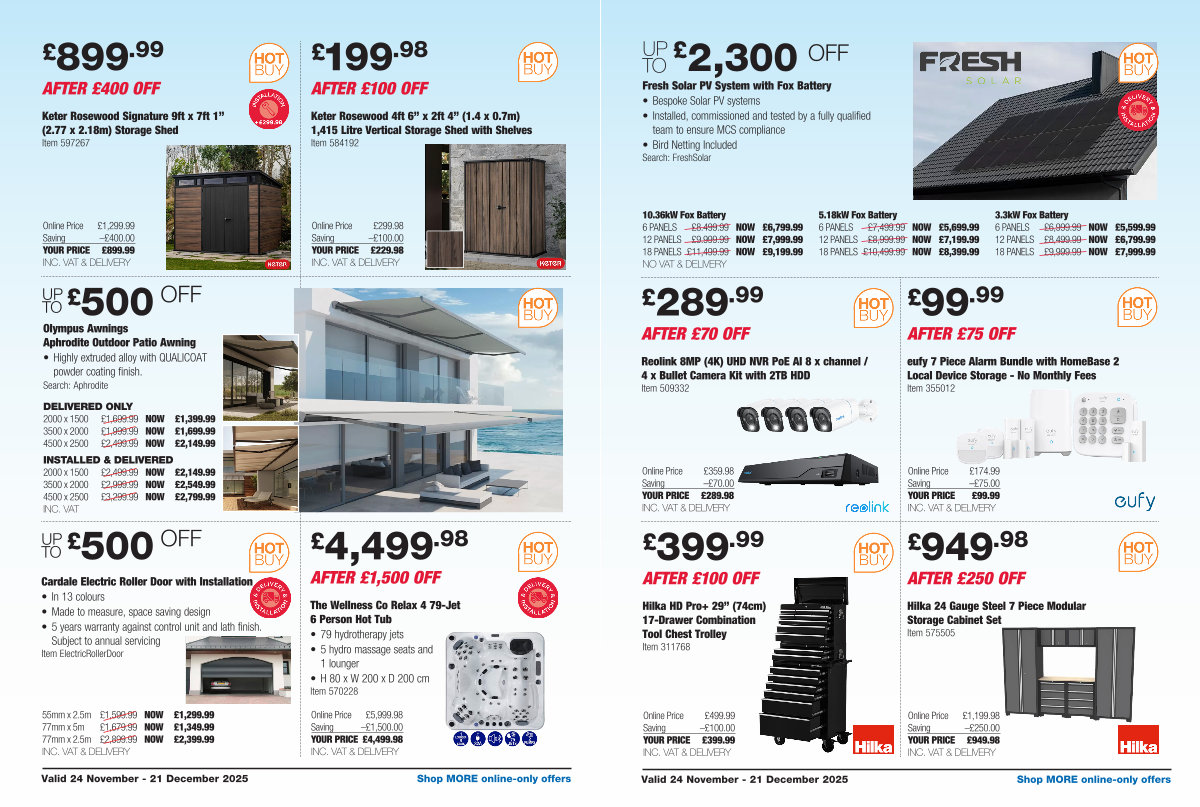 10.36kW Fox Battery 6 PANELS £ 8.499.99 NOW £ 6,799.99 12 PANELS £ 9.999.99 NOW £ 7,999.99 18 PANELS £ 11,499.99 NOW £ 9,199.99 NO VAT & DELIVERY