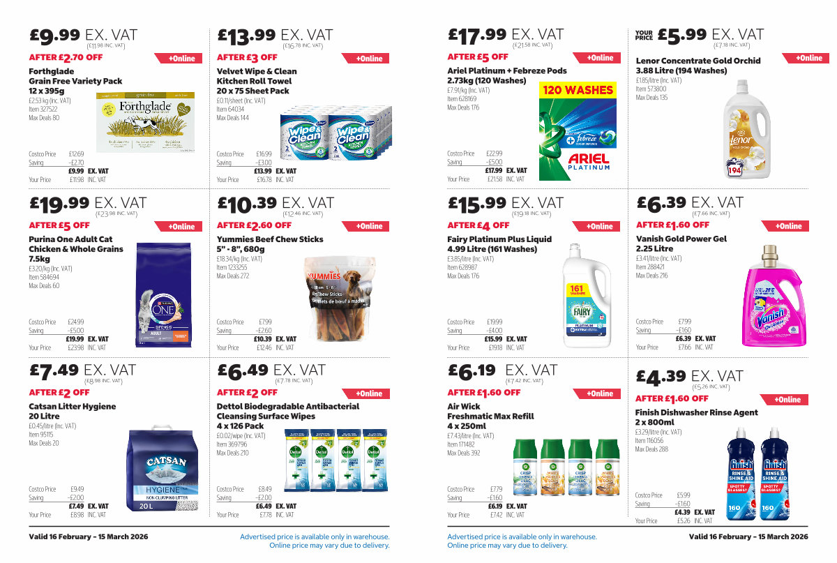 Ariel Platinum + Febreze Pods 2.73kg( 120 Washes) £ 7.91 / kg( Inc. VAT) Item 628169 Max Deals 176 |