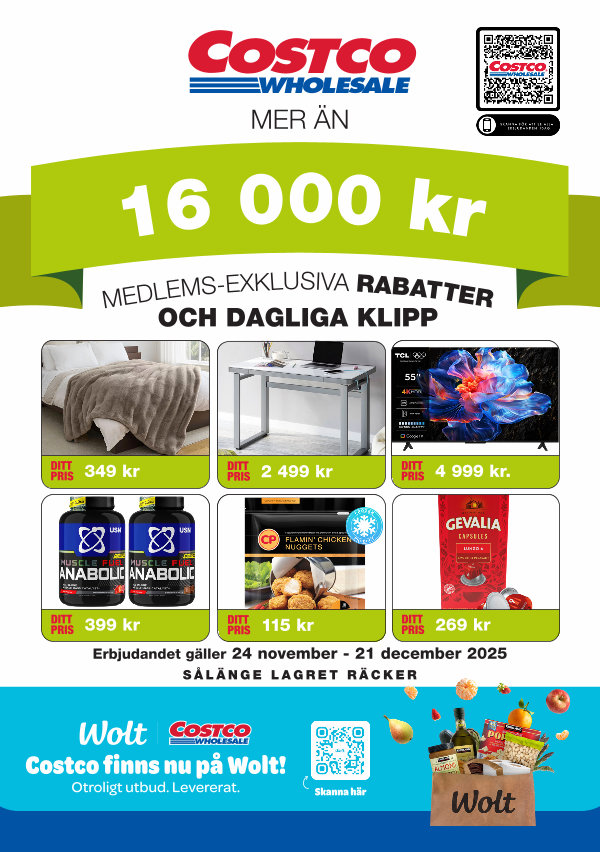 Costco finns nu på Wolt! Otroligt utbud. Levererat.