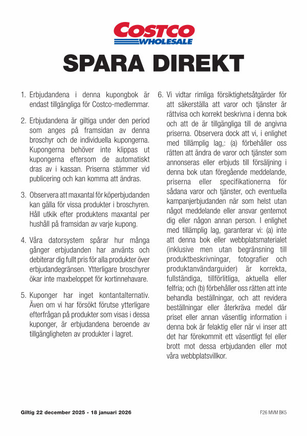 1. Erbjudandena i denna kupongbok är endast tillgängliga för Costco-medlemmar.