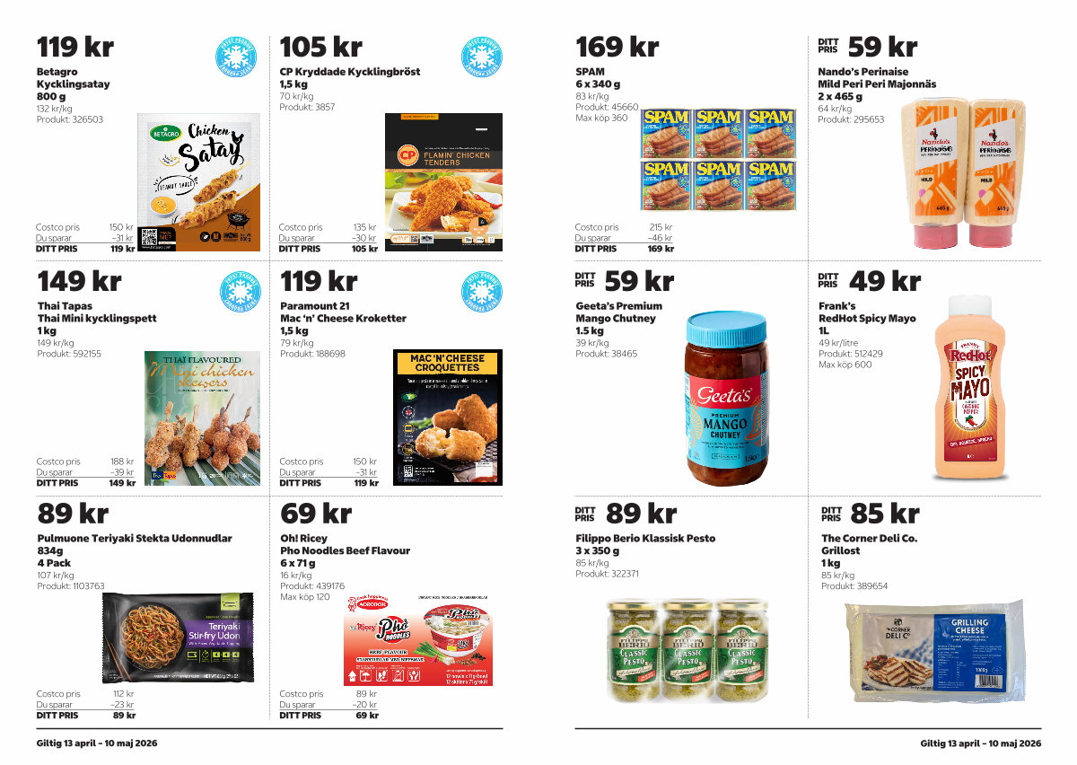 105 kr CP Kryddade Kycklingbröst 1,5 kg 70 kr / kg Produkt: 3857