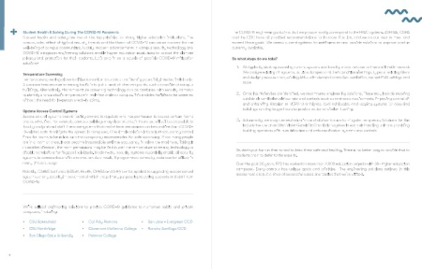 Student Health & Safety During The COVID-19 Pandemic Student health and safety are two of the top priorities for many higher education institutions . The compounded effect of typical security threats and the threat of COVID-19 can cause concern for the well-being of campus communities . Luckily , modern advancements in campus security technology and COVID-19 mitigation engineering solutions enable higher education institutions to pursue the ultimate privacy and protection for their students . Let ’ s zero in on a couple of possible COVID-19 mitigation solutions :