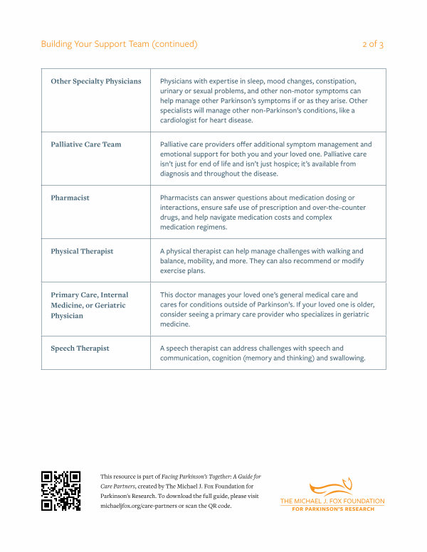 This resource is part of Facing Parkinson’ s Together: A Guide for Care Partners, created by The Michael J. Fox Foundation for Parkinson ' s Research. To download the full guide, please visit michaeljfox. org / care-partners or scan the QR code.