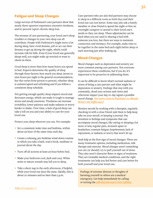 Large surveys of Parkinson’ s care partners show that nearly three-quarters experience excessive tiredness, and 60 percent report chronic sleep loss.