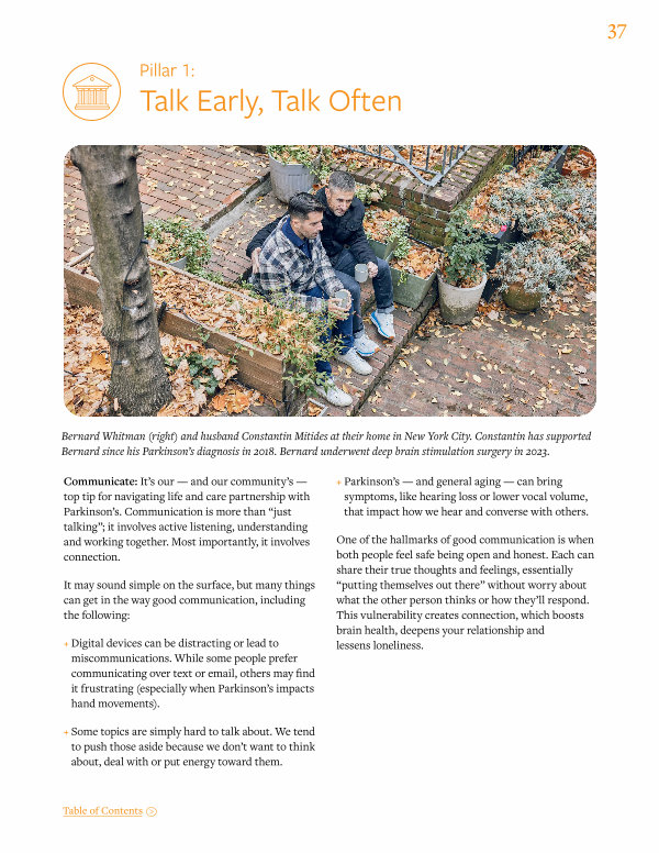 Communicate: It’ s our— and our community’ s— top tip for navigating life and care partnership with Parkinson’ s. Communication is more than“ just talking”; it involves active listening, understanding and working together. Most importantly, it involves connection.