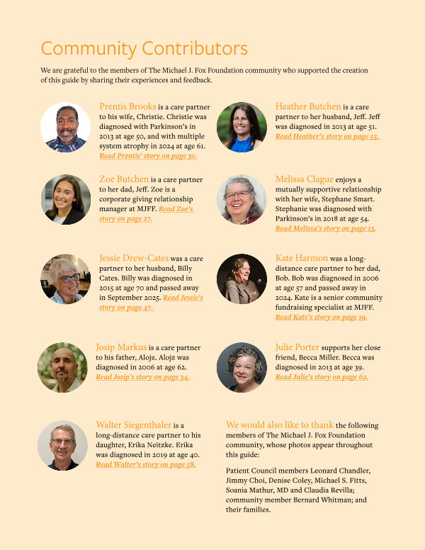 We are grateful to the members of The Michael J. Fox Foundation community who supported the creation of this guide by sharing their experiences and feedback.