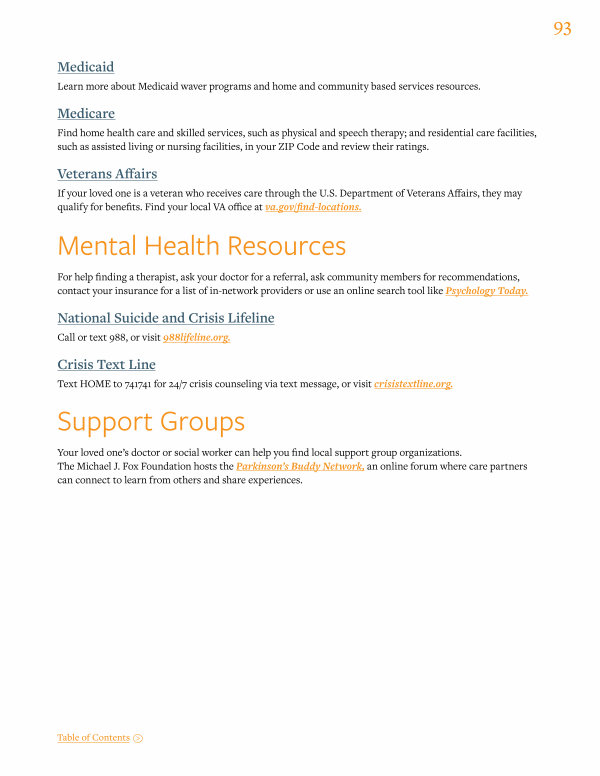 Your loved one’ s doctor or social worker can help you find local support group organizations. The Michael J. Fox Foundation hosts the Parkinson’ s Buddy Network, an online forum where care partners can connect to learn from others and share experiences.