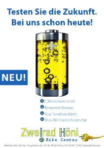 NEU! + E-Bikes kostenlos testen. + Kompetente Beratung. + Neue Ausstellungsfläche. + Bis zu 300,- Euro für Ihr altes Rad. Zweirad Höni E-Bike Center