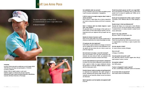 Il 2010 è stata la tua miglior stagione. Qual è stata la vittoria più bella? Direi la prima, lo Swiss Open. Era un torneo importante ed è stata la mia prima vittoria nel LET. Da lì è cambiato tutto.