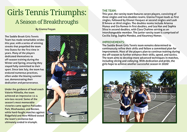 The Saddle Brook Girls Tennis Team has made remarkable strides this year, with a series of winning streaks that propelled the team into States for the first time in years. Many of the players dedicated themselves to off-season training during the Winter and Spring, ensuring they stayed fully committed to their sport. Since late July, the team has endured numerous practices, often under the blazing summer sun, demonstrating their dedication and perseverance.