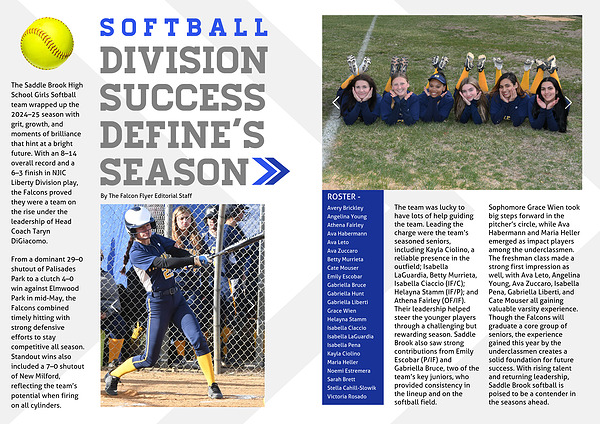 The Saddle Brook High School Girls Softball team wrapped up the 2024–25 season with grit, growth, and moments of brilliance that hint at a bright future. With an 8–14 overall record and a 6–3 finish in NJIC Liberty Division play, the Falcons proved they were a team on the rise under the leadership of Head Coach Taryn DiGiacomo.