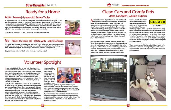 At Gerald Subaru of Naperville we are very familiar with the joys that come with pet ownership . We are proud of the fact that we represent a brand that shares that same sentiment . While the human-pet bond is sacred , it doesn ’ t come without its complications . One of which is the constant struggle to keep your vehicle clean while chauffeuring your beloved pet around town . Constant shedding , slobber , paw prints and more are adorable , but can literally leave a mark . In light of that , Subaru has an entire line of items to help keep your Subaru clean and your pet comfortable .