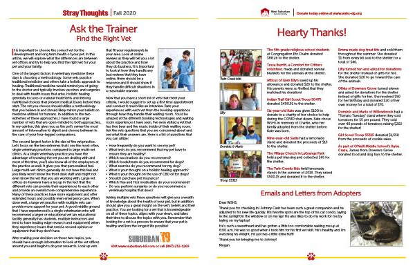 Six-year-old Kate was given $ 100 to donate to a charity of her choice to help during the COVID shut down . Kate chose WSHS in memory of Charlie , who her family adopted from the shelter before Kate was born .