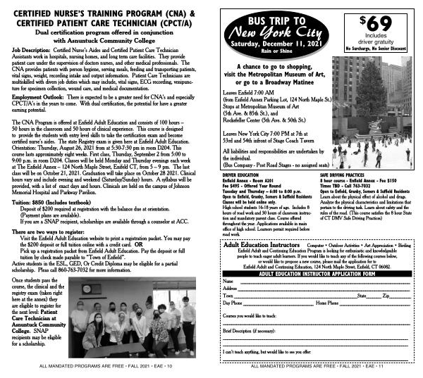 ALL MANDATED PROGRAMS ARE FREE • FALL 2021 • EAE • 10