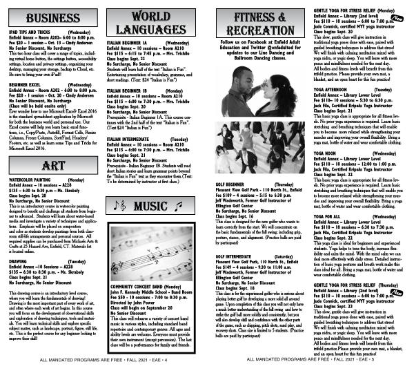 ALL MANDATED PROGRAMS ARE FREE • FALL 2021 • EAE • 4