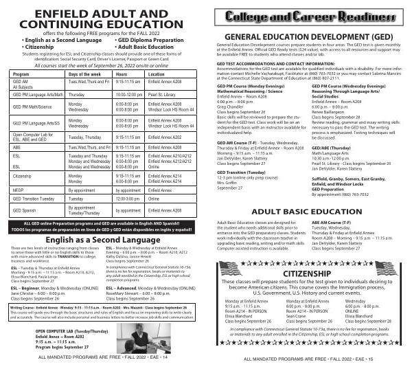 ALL MANDATED PROGRAMS ARE FREE • FALL 2022 • EAE • 15