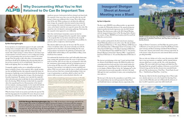 The idea to give SBAND ’ s non-golfing members an opportunity to socialize the Wednesday afternoon of the annual meeting was kicked around by the board of governors after the 2023 Annual Meeting . That idea became reality at the 2024 Annual Meeting with the inaugural shotgun shoot at The Shooting Park in Horace , just outside of Fargo . SBAND board members Josh Frey and Paul Myerchin served as hosts .