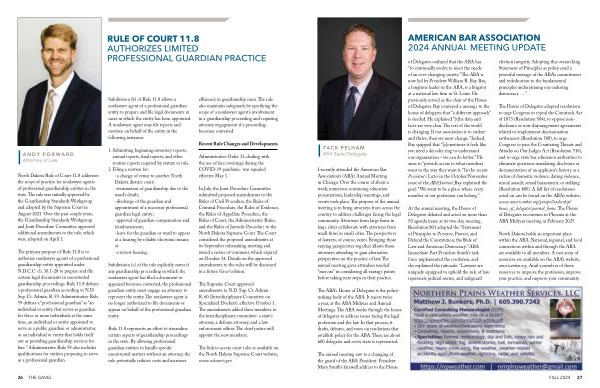 North Dakota Rule of Court 11.8 addresses the scope of practice for nonlawyer agents of professional guardianship entities in the state . The rule was initially approved by the Guardianship Standards Workgroup and adopted by the Supreme Court in August 2021 . Over the past couple years , the Guardianship Standards Workgroup and Joint Procedure Committee approved additional amendments to the rule , which were adopted on April 1 .