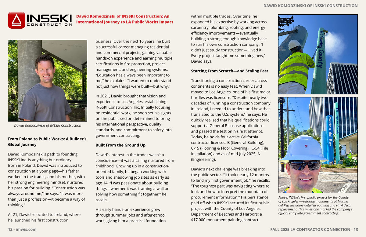 Dawid Komodzinski of INSSKI Construction: An International Journey to LA Public Works Impact