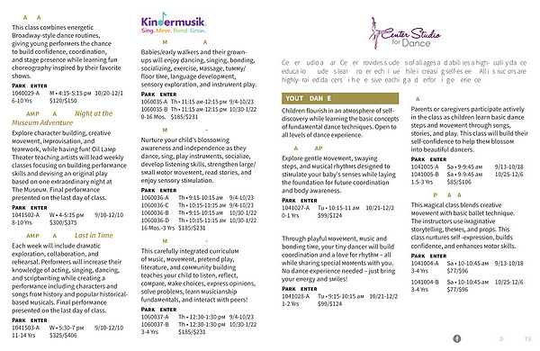 Park Center 1060035-A Th • 11:15 am-12:15 pm 9 / 4-10 / 23 1060035-B Th • 11:15 am-12:15 pm 10 / 30-1 / 22 0-16 Mos. $ 185 /$ 231