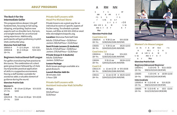 Players will rotate partners and courts on a weekly basis. In-House League participants must have completed 1 session of classes or be approved by Head Pro Tony Marino. Glenview Prairie Club