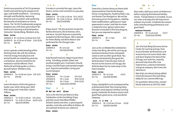 Join the East Wing Glenview Senior Center for exciting outings, from musical theater performances and museum tours to scenic boat rides and more! Explore the best of the Chicago area with fun, expertly planned trips that offer new experiences, cultural enrichment, and great company. Don ' t miss the adventure!