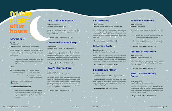 40 nssra. org / programs |( 847) 509-9400 Social Clubs