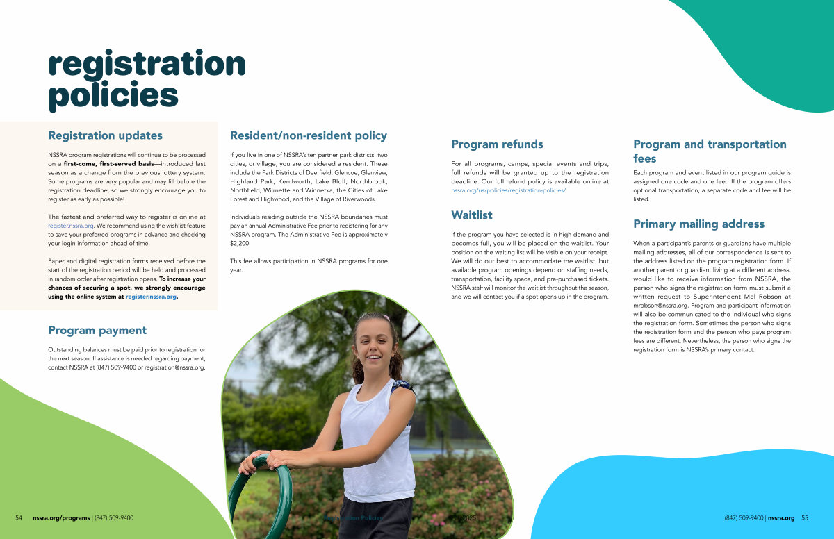 54 nssra. org / programs |( 847) 509-9400 Registration Policies
