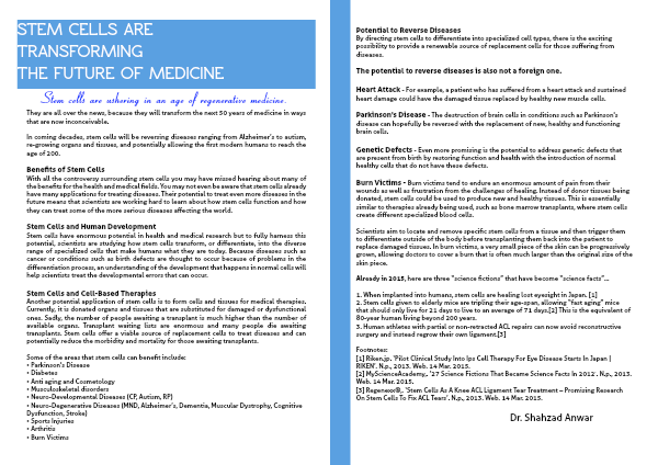 In coming decades, stem cells will be reversing diseases ranging from Alzheimer’s to autism, re-growing organs and tissues, and potentially allowing the first modern humans to reach the age of 200.