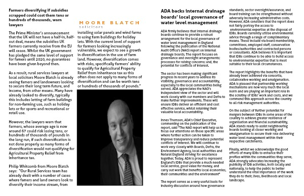 installing solar panels and wind farms to using farm buildings for holiday lets. With the current level of support for farmers looking increasingly vulnerable, we expect to see a growth in diversification in the use of farm land. However, diversification comes with risks, specifically farmers’ ability to qualify for Agricultural Property Relief from inheritance tax as this often does not apply to many forms of diversification and can be worth tens or hundreds of thousands of pounds.”