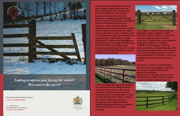 In addition to the supply of fencing products Calders and Grandidge also offer a third party treatment option in Creosote or Celcure enabling customers to send in their own timber for treatment. Prices are available from the Sales Team for this service.