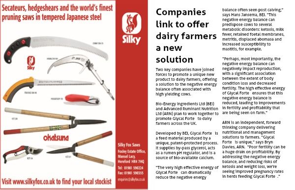 Bio-Energy Ingredients Ltd (BEI) and Advanced Ruminant Nutrition Ltd (ARN) plan to work together to promote Glycal Forte to dairy farmers across the UK.