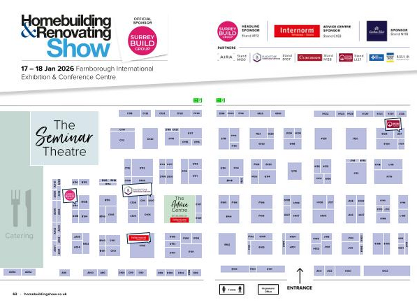 62 • homebuildingshow. co. uk 17 – 18 Jan 2026 Farnborough International Exhibition & Conference Centre C102 C110 A105 C109 C118 C122 C123 E122 D105 SPONSORED BY D103 E106 D120 D101 B110 A116 C106 B115 B116 B114 B118 D112 A004 B103 C112 C114 D113 A108 A112 D109 E117 C108 D115 C90 C99 C100 A80 A100 A90 A002 C105 D108 B102 D102 D100 D99 E98 A104 B101 C103 C101 D116 D118 D121 B106 D114 E10 D106 The Seminar Theatre Catering The Advice Centre A106 A103 A102 A101 B108 D117 A114 A120 A010 A008 A006 A002 A001 D107 C111 D110 B104 C102 C110 A105 C109 C118 C122 C123 E122 D124 D105 SPONSORED BY D103 E106 D120 D101 B110 A116 C106 B115 B116 B114 B118 D112 A004 B103 C112 C114 D113 A108 A112 D109 E115 E117 C108 D115 C90 C99 C100 A80 A100 A90 A002 C105 D108 B102 D102 D100 D99 E99 E98 A104 B101 C103 C101 E111 E113 D116 D118 D121 B106 D114 E101 D106 The Seminar Theatre Catering The Advice Centre E109 E107 A106 A103 A102 A101 B108 D117 A114 A120 A010 A008 A006 A002 A001 D107 C111 D110 B104 E103
