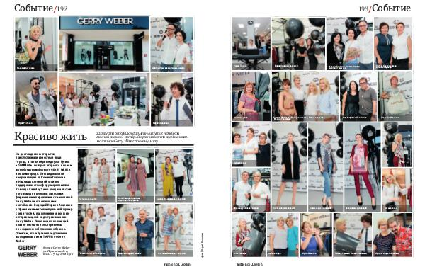 На долгожданном открытии присутствовали известные люди города, а также верные друзья бутика « DOMMOD », который открылся в новом монобредовом формате GERRY WEBER в нашем городе. Легкая джазовая импровизация от Романа Глазкова и Надежды Антоновой отлично поддержали атмосферу мероприятия. Команда Catering Team угощала гостей потрясающе вкусными закусками, фирменными пирожными с символикой Gerry Weber и освежающими коктейлями. Ведущий Кирилл Авалиани устроил мини-интеллектуальный турнир среди гостей, подготовив вопросы из истории модной индустрии и марки Gerry Weber. Показ новых коллекций плавно перешел в эксперименты по созданию собственных образов. Отметим, что в бутике представлена молодежная линия TAIFUN от Gerry Weber.