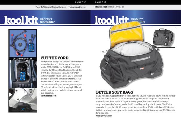 If you hate soft luggage that droops and deforms when you strap it down , look no further than Givi ’ s line of Ultima-T All-Round Soft Bags . With their polyester and polymer thermoformed foam shells , 100-percent waterproof liners and details like heavyduty handles and reflective panels , the Ultima-T bags will go the distance . The 25-liter expandable cargo bag ($ 155 ) straps to just about anything , 25-liter side bags ($ 299 ) attach to Givi — or almost any — side carrier systems and the big 65-liter cargo bag ($ 349 ) is ready for a long trip . Visit giviusa . com