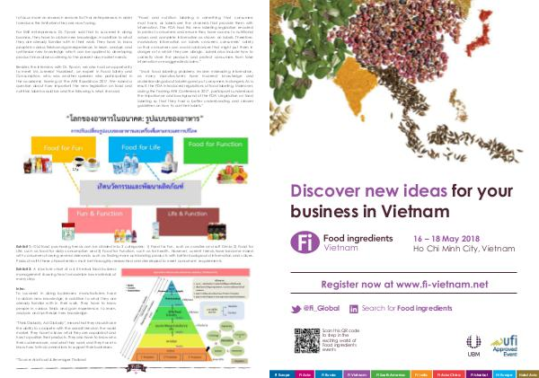 “ Most food labeling problems involve misleading information, as many manufacturers have incorrect knowledge and understanding about labeling and put consumers in dangers. As a result, the FDA introduced regulations of food labeling. Moreover, during the Training AFB Conference 2017, participants understood the importance and background of the FDA’ s legislation on food labeling so that they had a better understanding and clearer guidelines on how to use their labels.”
