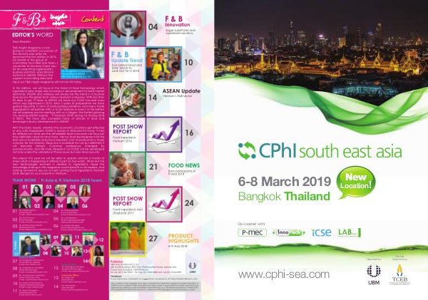 6-8 March 2019 Bangkok Thailand New Location ! Co-located with: Organised by: www.cphi-sea.com Officially Supported by: