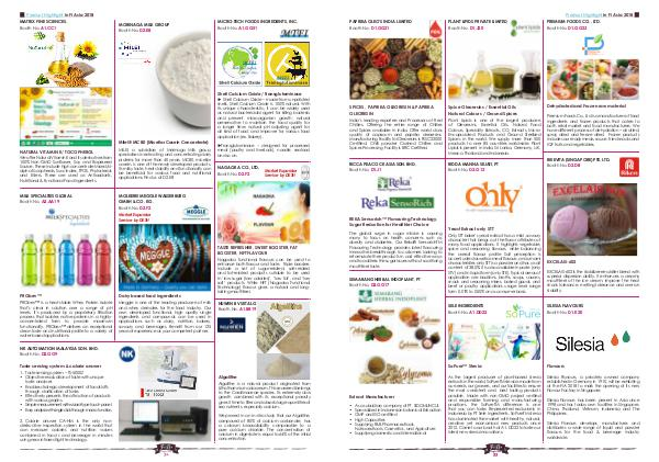 Product Highlight in Fi Asia 2018 PAPRIKA OLEO’S INDIA LIMITED Booth No. D1.GG21 PLANT LIPIDS PRIVATE LIMITED Booth No. D1.J20 PREMIUM FOODS CO., LTD. Booth No. D1.GG23 SPICES , PAPRIKA OLEORESIN & PAPRIKA OLEORESIN Spice Oleoresins / Essential Oils Natural Colours / Ground Spices Dehydrated and Frozen raw material India’s leading exporters and Processors of Red Chillies. Offering the entire range of Chillies and Spices available in India. Offer world class quality of capsicum and paprika oleoresins. Manufacturing Facility for Oleoresins is FSSC 22000 Certified. Chilli powder Crushed Chillies and Spices Processing Facility is BRC Certified. Plant Lipids is one of the largest producers of Oleoresins, Essential Oils, Natural Food Colours, Speciality Extracts, CO 2 Extracts, Micro- Encapsulated Products and Ground Sterilized Spices in the world. We supply more than 500 products to over 85 countries worldwide. Plant Lipids is present in India, Sri Lanka, Germany, U.K, Mexico, Thailand and Indonesia. RICCA PEACOCK ASIA SDN. BHD. Booth No. D1.J1 RIDDA MANNA SEJATI, PT Booth No. D2.G12 REKA Sensorich™ Flavouring Technology, Sugar Reduction for Healthier Choice The global surge in sugar intake is causing many to focus on health concerns such as obesity and diabetes. Our Reka® SensorichTM Flavouring Technology provides latest flavouring innovative breakthrough to customers looking to reformulate their products in cost effective ways and to address the sugar issues without sacrificing mouthfeel taste. SEMARANG HERBAL INDOPLANT, PT Booth No. D2.GG17 Extract Manufacturer • • • • • • As a subsidiary company of PT. SIDOMUNCUL Specialized in Indonesian botanical Extraction GMP and ISO certified High Capacities Supplying F&B,Pharmaceuticals, Nutraceuticals, Cosmetics, and Agriculture Suppliying domestic and international Premium Foods Co., Ltd is a manufacturer of food ingredients and frozen products that caters to both retail market and food manufacturers. We have different process of dehydration – air dried, spray dried and freeze dried. Frozen products includes our ready meals, sauce, fried snacks and IQF fruits and vegetables. RIKEVITA (SINGAPORE) PTE. LTD. Booth No. D2.D8 Yeast Extract only STT Only STT baker’s yeast extract has a mild ,savoury character that brings out the flavor attributes of many food applications. It highlights vegetable, spice and seasoning flavours, while balancing the overall flavour profile Salt perception is accentuated as well as meat flavours, and umami characteristies only STT is a powder and has a salt content of 38.0%. It is also available in paste (only STV) and in liquid form (only STE). Typical areas of application are bouillons, broths, soups, sauces, snack and seasoning mixes, baked goods, and beef or poultry applications usage level range form 0.01% to 0.50% on as consumer basis. EXCELAIS-602 SELE INGREDIENTS Booth No. A1.DD22 SILESIA FLAVOURS Booth No. D1.K20 SoPure™ Stevia Flavours As the largest producer of plant-based stevia extracts in the world, SoPureTM stevia is made from our seeds, our growers, and our facilities to ensure the most consistent and best tasting products possible. Made with non-GMO project verified and responsible farming and manufacturing practices, the SoPureTM difference is one that you can taste. Represented exclusively in Indonesia by PT Sele Ingredients, SoPureTM stevia has dominated the market with healthy, natural, creative yet economical new products since 2012. Come to our booth at A1. DD22 to taste our latest new stevia innovations. Silesia Flavours, a privately owned company established in Germany in 1910, will be exhibiting at the FIA 2018 to mark the opening of its new Flavour Factory in Singapore. 33 EXCELAIS-602 is the stabilizer-emulsifier blend with superior dispersion ability. It enhances a creamy mouthfeel of the ice cream, improve the heat shock tolerance, melting tolerance and overrun stability. Silesia Flavours has been present in Asia since 1998 and has today own facilities in Singapore, China, Thailand, Vietnam, Indonesia and The Philippines. Silesia Flavours develops, manufactures and distributes a wide range of liquid and powder flavours for the food & beverage industry worldwide.