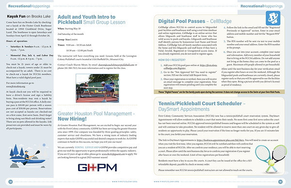 At Greater Houston Pool Management, we are excited to begin our second year with the First Colony community. GHPM has been servicing the greater Houston area since 1999. Our company was founded by three guiding principles: safety, customer service and cleanliness. We have a strong team of industry leading experts that make GHPM a successful and desired company to work for. As GHPM continues to build on this success, we hope you will join our team!