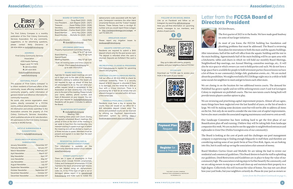 Stay up to date with events, property updates, and your neighbors here at FCCSA!