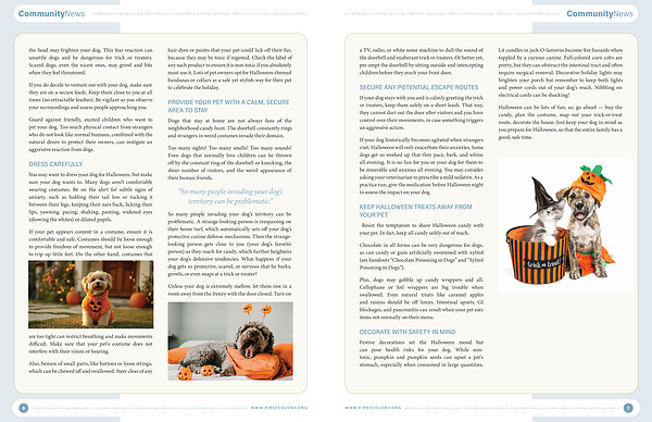 So many people invading your dog’ s territory can be problematic. A strange-looking person is trespassing on their home turf, which automatically sets off your dog’ s protective canine defense mechanism. Then the strangelooking person gets close to you( your dog’ s favorite person) as they reach for candy, which further heightens your dog’ s defensive tendencies. What happens if your dog gets so protective, scared, or nervous that he barks, growls, or even snaps at a trick or treater?