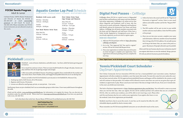 Call Jack Foster, USPTA Master Professional and Director of Tennis for FCCSA at 281-450-4187 or email jmtennis88 @ gmail. com or call Coach Ty Lynch at 346-288-4138. Please remember non FCCSA tennis instructors are not allowed to teach on the courts.