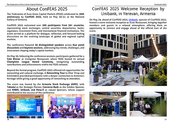 The Federation of Euro-Asian Capital Markets (FEAS) celebrated its 30th anniversary by ConFEAS 2025, held on May 30–31 at the National Gallery of Armenia.